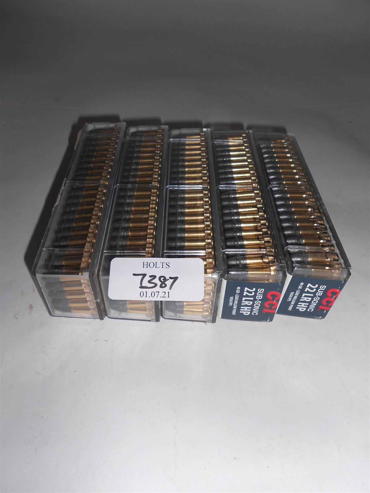 500 ROUNDS .22LR SUBSONIC HP AMMUNITION BY CCI Please be advised that cartridges/ammunition, primers, primed cases, blanks and percussion caps cannot be sent to you by post or carrier. If you wish, you can book a collection at one of our regional valuation days, or collect from our offices at PE31 6HA in Norfolk