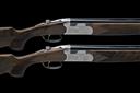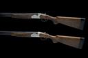 dated 2005, 29 1/2in. nitro barrels with 6mm ventilated matt top-ribs, 3in. chambers, bored approx. imp. cyl. and 1/4 choke (both), hold-open toplevers, automatic safeties with integral barrel selector switches, gold-washed single triggers, partial acanthus scroll engraving, matt silver finish, 15 3/4in. pistolgrip stocks including 1 5/8in. rubber recoil pads and extensions, weight 6lb. 8oz, in their individual makers universal cases