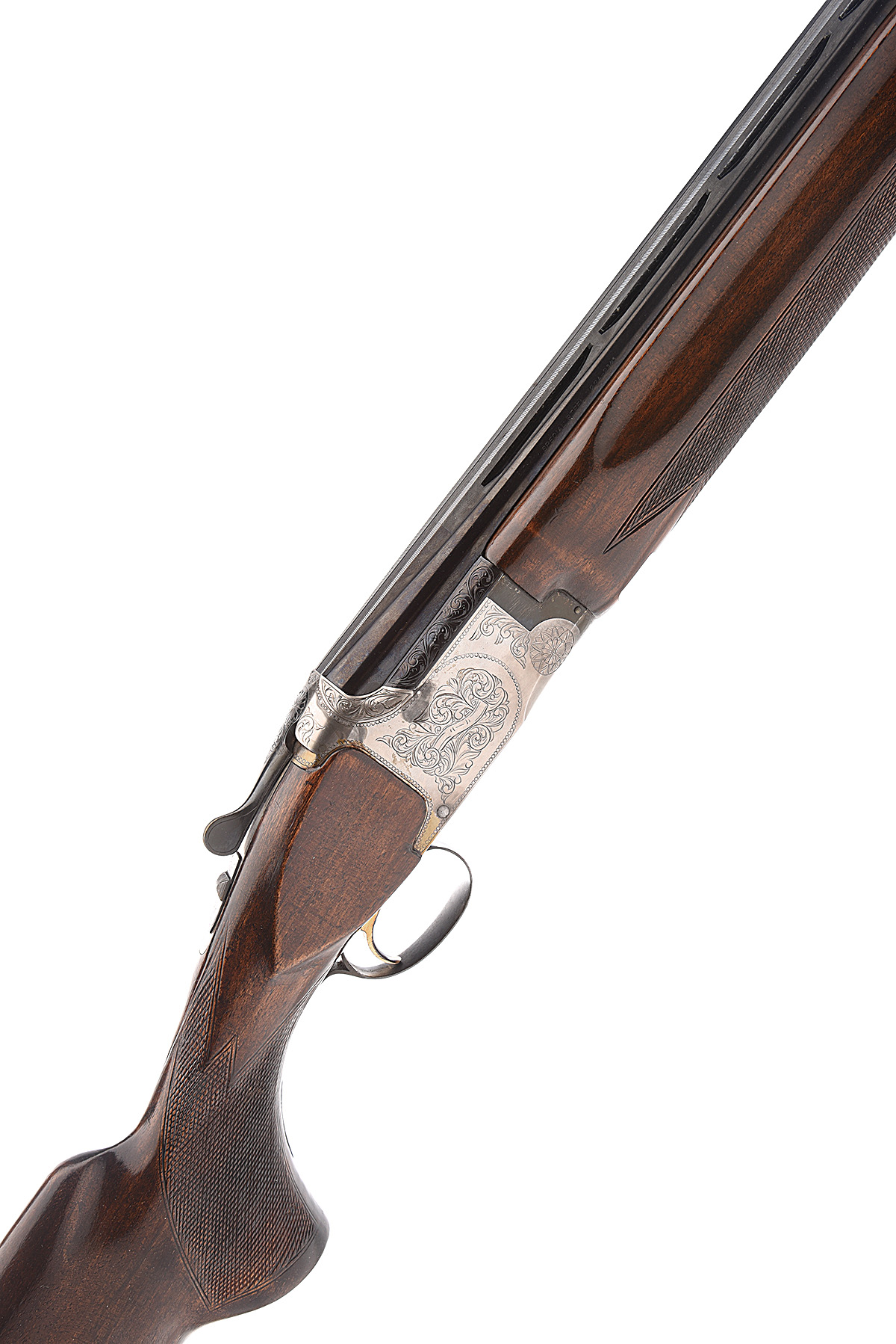 B.C. MIROKU 12-BORE SINGLE-TRIGGER OVER AND UNDER EJECTOR, serial no. 2260392, circa 1978, 30in. nitro barrels with 15mm ventilated matt top-rib, 2 3/4in. chambers, bored approx. full choke in both, hold-open toplever, manual safety with integral barrel selector switch, gold-washed single trigger, border and partial scroll engraving, 14 1/4in. pistolgrip stock including 1in. ventilated rubber recoil pad, weight 8lb. 3oz.