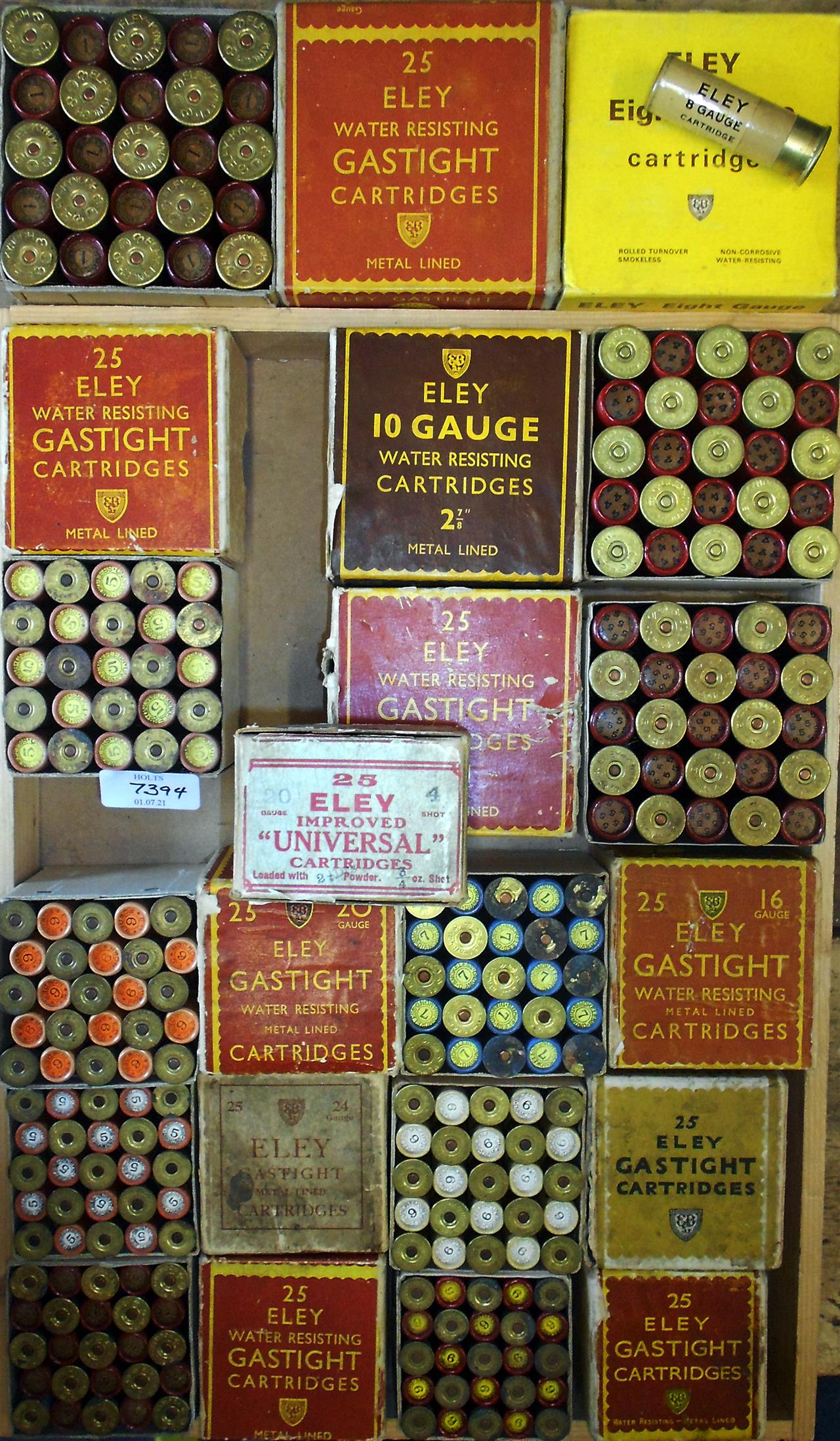 25 Eley Kynoch 14 bore Gastight 2 1/2in, rt, slight corrosion to bases, 5 shot