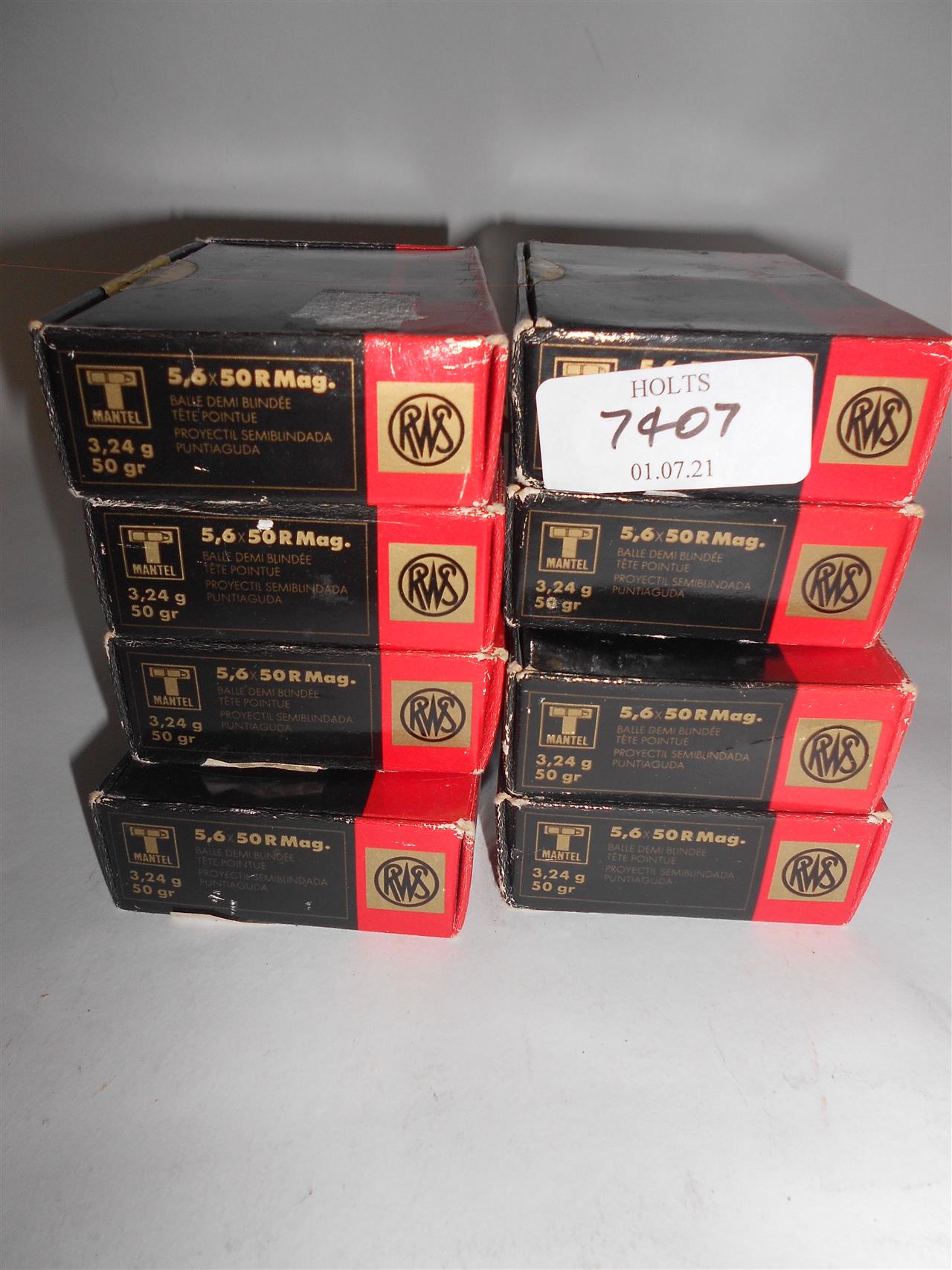 160 ROUNDS 5.6 X 50R AMMUNITION BY RWS, 50grn, SOFT POINTED BULLET Please be advised that cartridges/ammunition, primers, primed cases, blanks and percussion caps cannot be sent to you by post or carrier. If you wish, you can book a collection at one of our regional valuation days, or collect from our offices at PE31 6HA in Norfolk