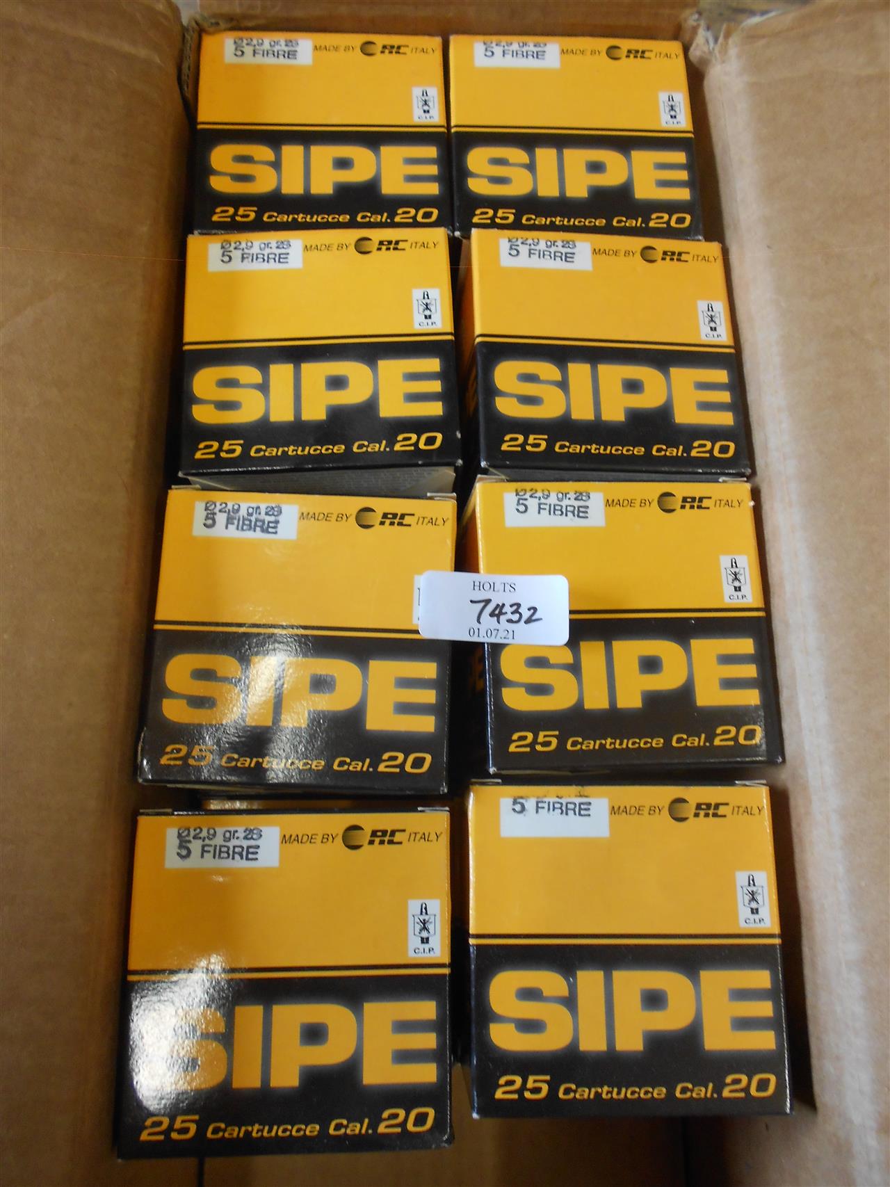 400 R.C. SIPE 20 BORE CARTRIDGES, 70mm, 28grm, 5 SHOT, FIBRE WAD Please be advised that cartridges/ammunition, primers, primed cases, blanks and percussion caps cannot be sent to you by post or carrier. If you wish, you can book a collection at one of our regional valuation days, or collect from our offices at PE31 6HA in Norfolk