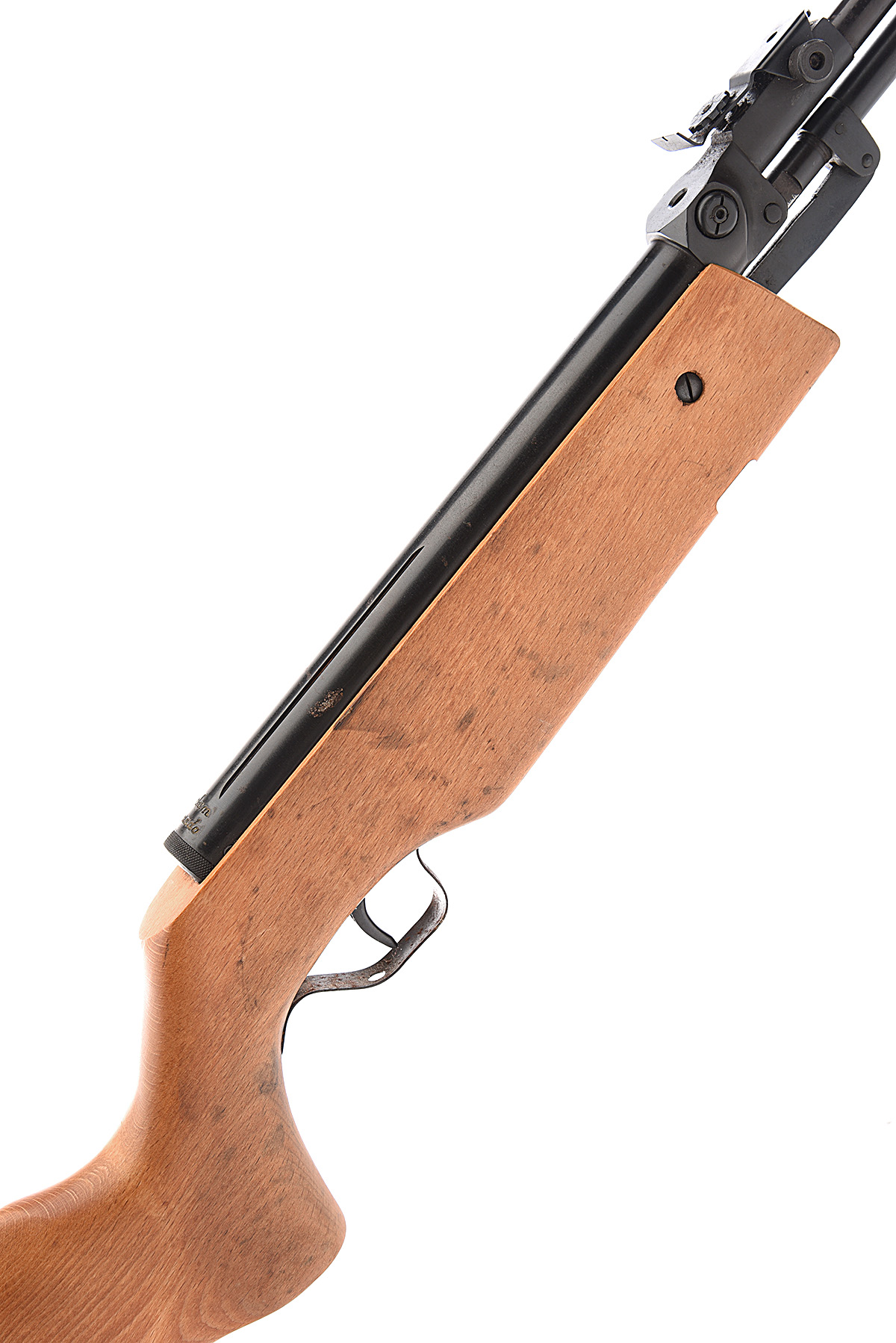 A .22 UNDER-LEVER AIR-RIFLE SIGNED RELUM, MODEL 'TORNADO' serial no. 52405, with a 19in. barrel, top loading breech tap, open sights, grooved dovetail for a telescopic sight in a beech half stock.