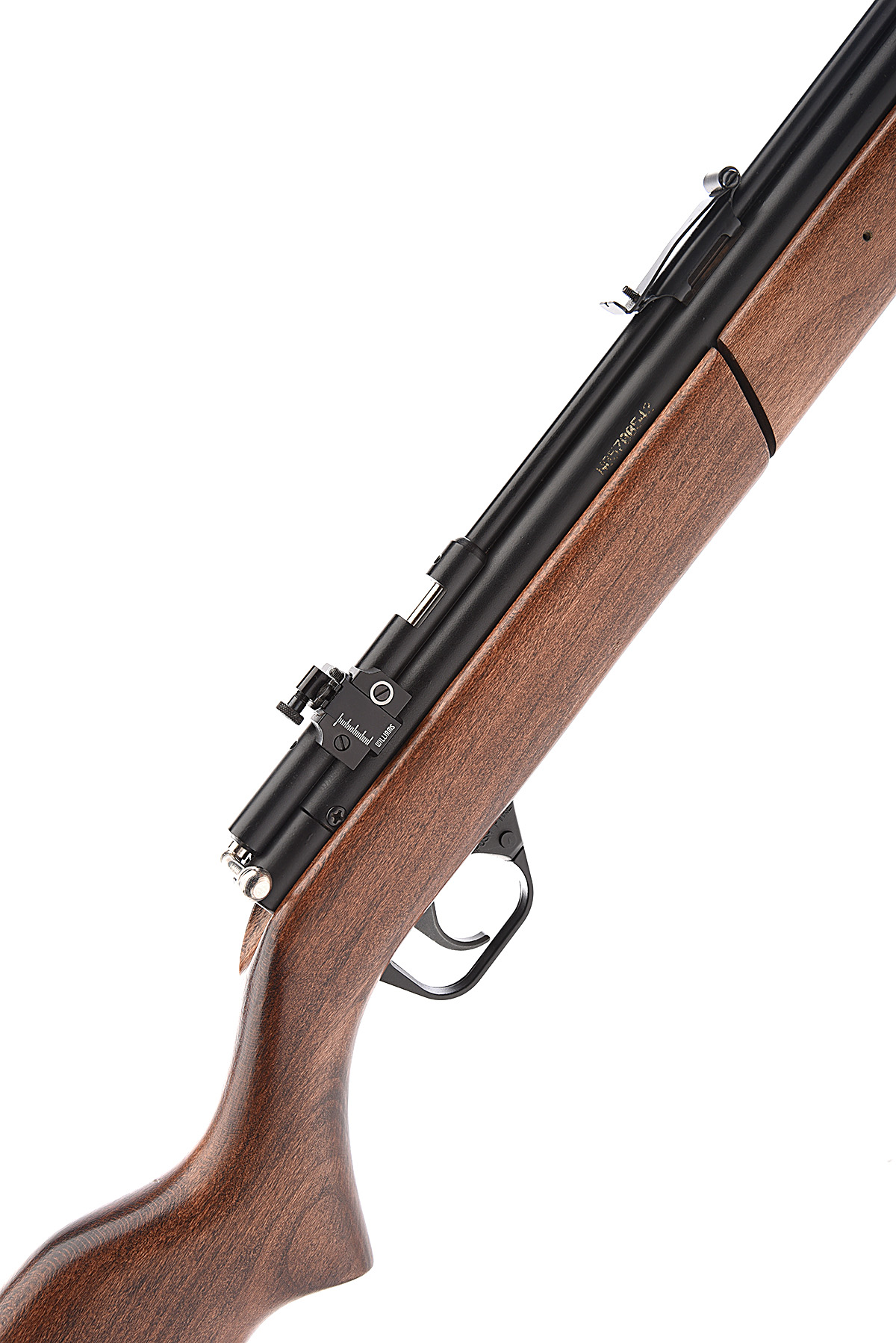 A .20 PUMP-PNEUMATIC AIR-RIFLE SIGNED CROSMAN, MODEL '69a SERIES' serial no. N05700542, with a 19in. barrel, black finish to metalwork, open adjustable peep sights, beech full stock, in good condition.