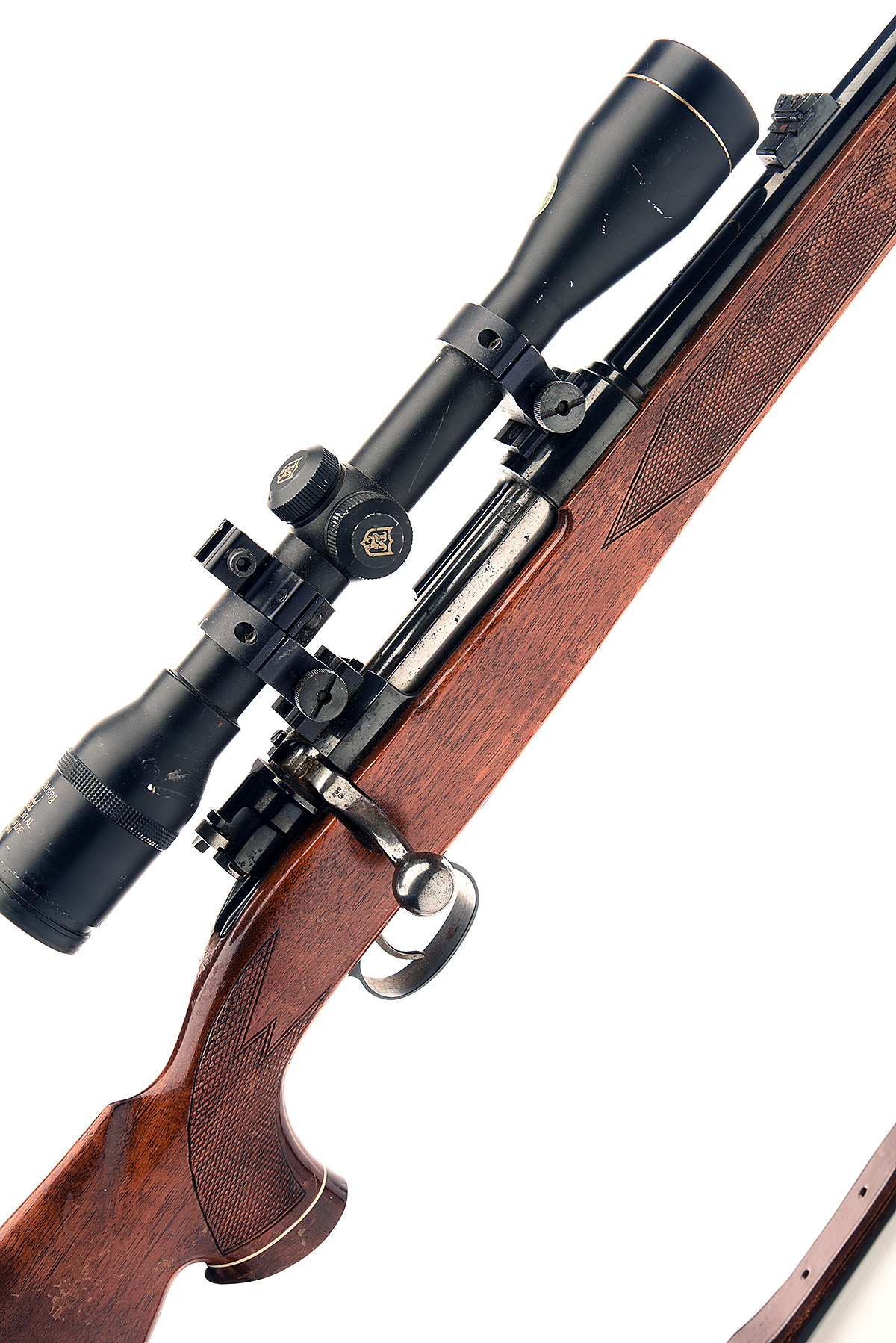 PARKER-HALE .243 WIN 'SAFARI SUPER' BOLT-MAGAZINE SPORTING RIFLE, serial no. L295S, circa 1968, 21 3/4in. nitro barrel, ramp-mounted bead fore-sight, folding leaf rear-sight, fitted with a Nikko Stirling 6x40 telescopic sight, manual safety, floorplate, pistolgrip stock with cheekpiece and worn recoil pad, leather sling