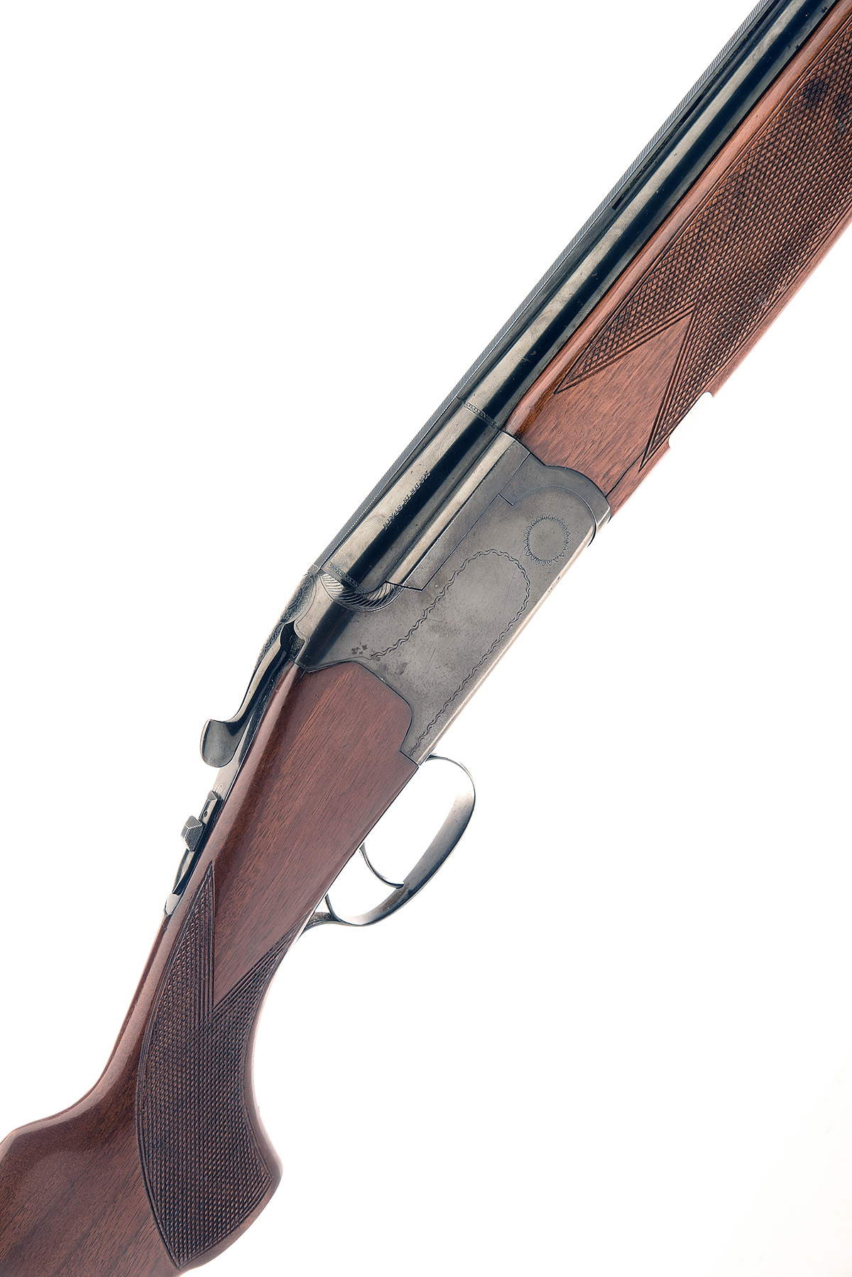 LANBER 12-BORE SINGLE-TRIGGER OVER AND UNDER NON-EJECTOR, serial no. 151198, dated 1978, 27 1/2in. nitro barrels with 6mm ventilated matt top-rib, 2 3/4in. chambers, bored approx. 1/4 and 1/2 choke, hold-open toplever, automatic safety with integral barrel selector, border engraving, blacked finish, 15in. pistolgrip stock including 1in. ventilated rubber recoil pad