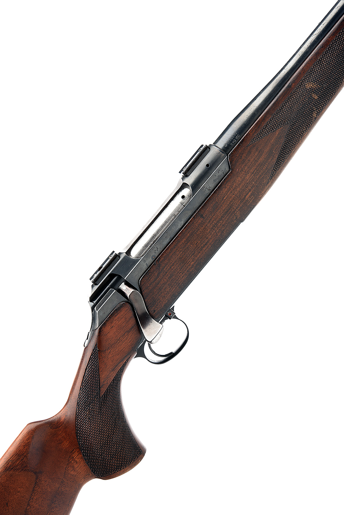 circa 1988, 23 5/8in. unsighted nitro barrel, scope rail, detachable magazine missing, 14 5/8in. well-figured pistolgrip stock (including ventilated recoil pad)
