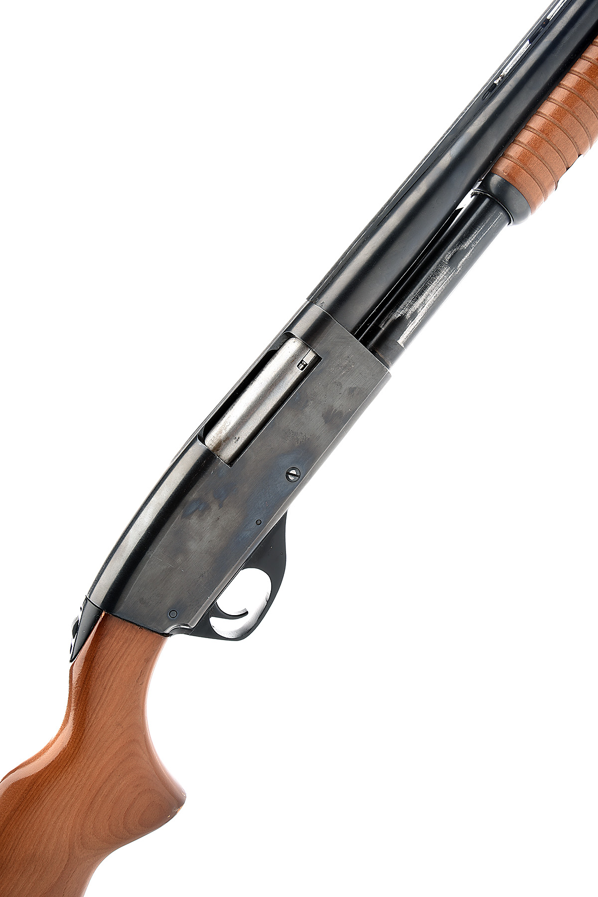 STEVENS 12-BORE (3IN.) 'MODEL 67 SERIES E' PUMP-ACTION SHOTGUN, serial no. E709820, for 1987, restricted magazine, 28in. nitro barrels with 8mm ventilated matt rib, 3in. chamber, bored approx. 1/2 choke, manual top-tang safety, plain blacked action, 14in. pistolgrip stock including ventilated rubber recoil pad