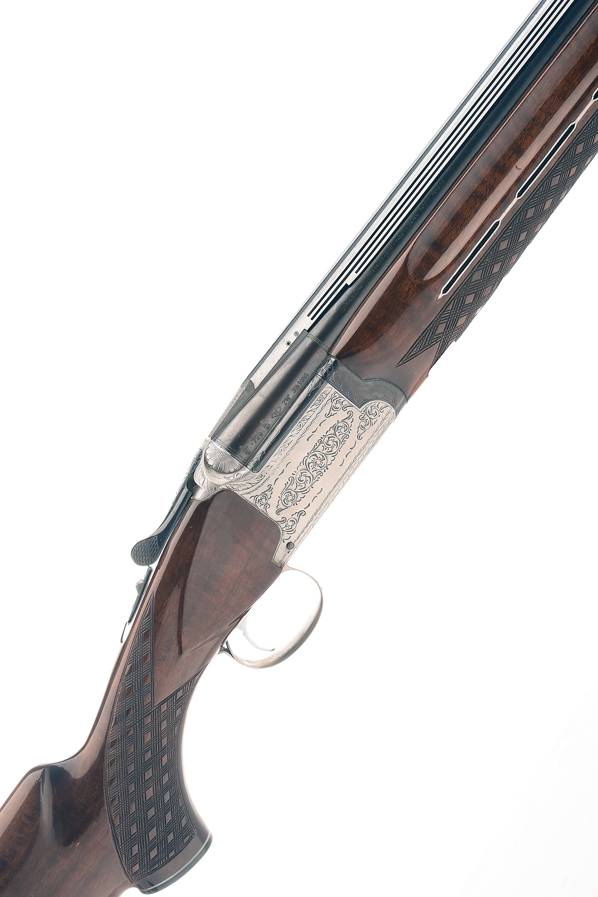 NIKKO ARMS CO. 12-BORE 'SHADOW' SINGLE-TRIGGER OVER AND UNDER EJECTOR, serial no. K702366, circa 1974, 29 3/4in. nitro barrels with characteristic 20mm ventilated matt top-rib, 2 3/4in. chambers, bored approx. 1/2 and 3/4 choke, hold-open toplever, manual safety with integral barrel selector switch, border and partial scroll engraving, 14 1/2in. pistolgrip stock including 1in. ventilated rubber recoil pad, weight 7lb. 14oz.