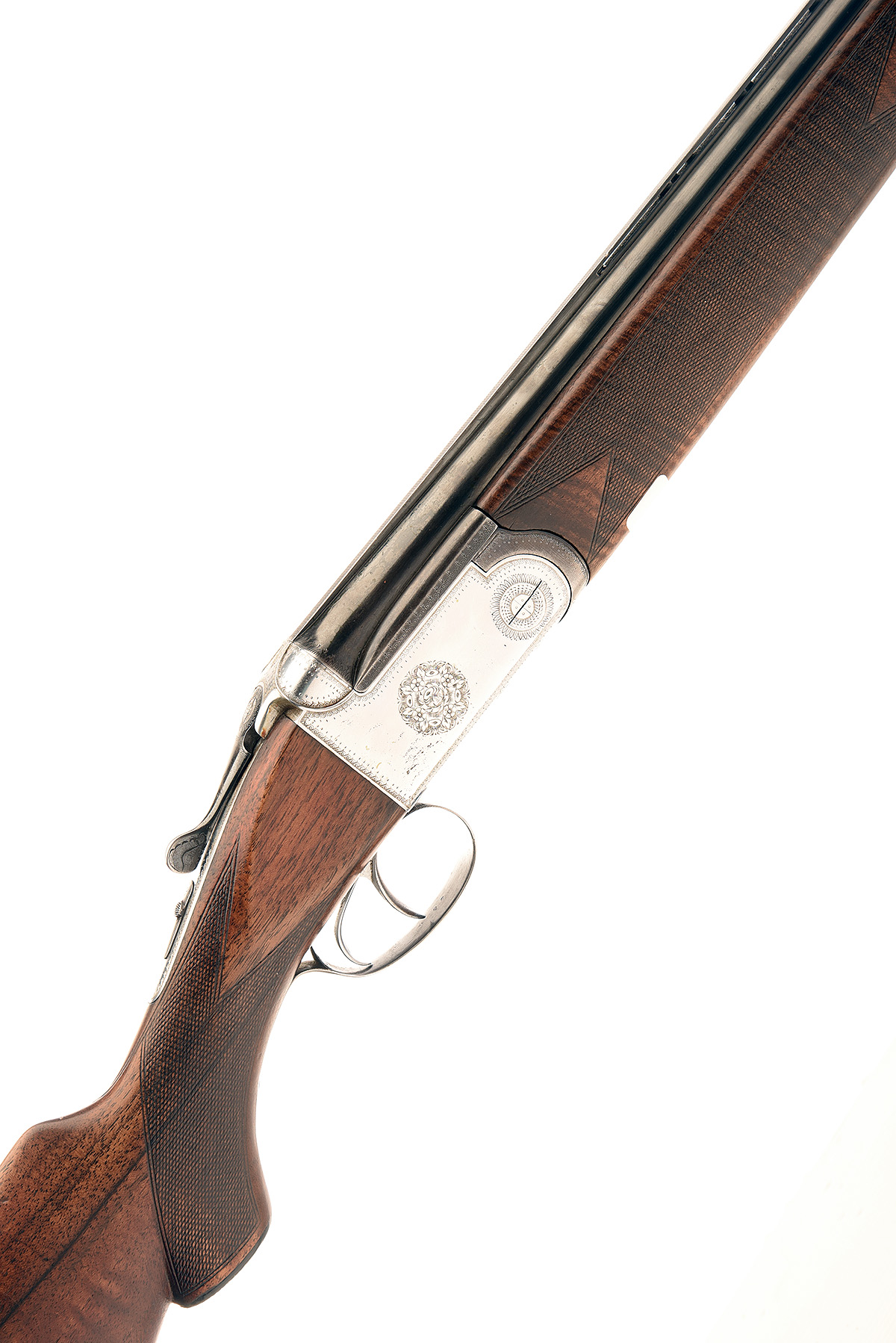 PEDERSOLI 12-BORE DOUBLE-TRIGGER OVER AND UNDER NON-EJECTOR, serial no. 1306, dated 1961, 27 5/8in. nitro barrels with 6mm ventilated matt top-rib, 2 3/4in. chambers, bored approx. true and imp. cyl., hold-open toplever, manual safety, border engraving surrounding a central bouquet, bright finish, 14 5/8in. pistolgrip stock including 1in. rubber recoil pad