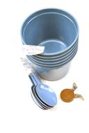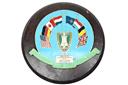 A GROUP OF MIXED POST-WAR MILITARIA includes a 1978 wooden presentation wall mount with metal plaque from Headquarters Allied Forces Central Europe, two small Sheffield fruit-knives cased in two old pennies, a Yugoslav canvas cover for a Mauser K98, a brown leather Czechoslovakian army map-case, and a set of six British blue Melamine mess bowls and spoons marked with the King's Crown and 'M / F'