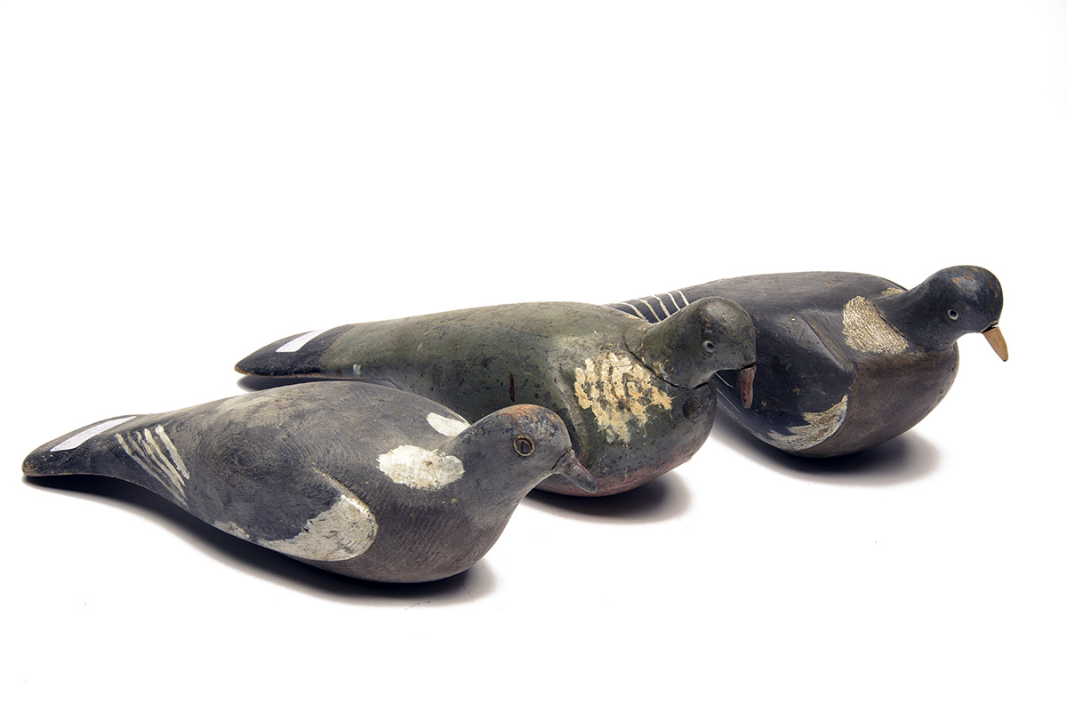 A COLLECTION THREE VINTAGE PIGEON DECOYS