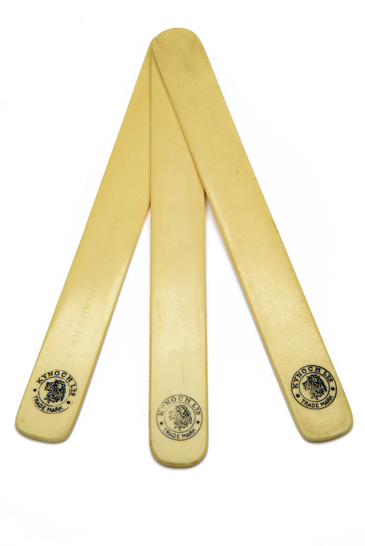 A COLLECTION OF THREE VINTAGE KYNOCH LETTER OPENERS, with Kynoch Ltd. lion head roundel