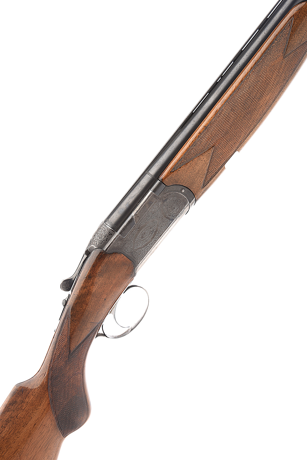 P. BERETTA 12-BORE 'S.56E' SINGLE-TRIGGER OVER AND UNDER EJECTOR, serial no. P09760, dated 1968, 27 3/4in. nitro barrels with 6mm ventilated matt top-rib, 2 3/4in. chambers, bored approx. imp. cyl. and 3/4 choke, hold-open toplever, manual safety with integral barrel selector switch, acanthus scroll engraving, 13 3/4in. semi-pistolgrip stock including 1/2in. recoil pad, weight 7lb. 5oz.
