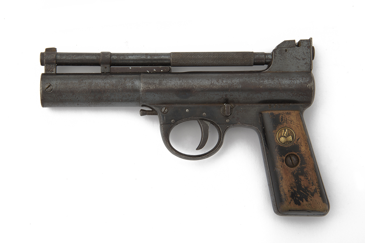 A .177 BARREL-COCKING AIR-PISTOL SIGNED WEBLEY & SCOTT, MODEL PRE-WAR MKI, serial no. 39562