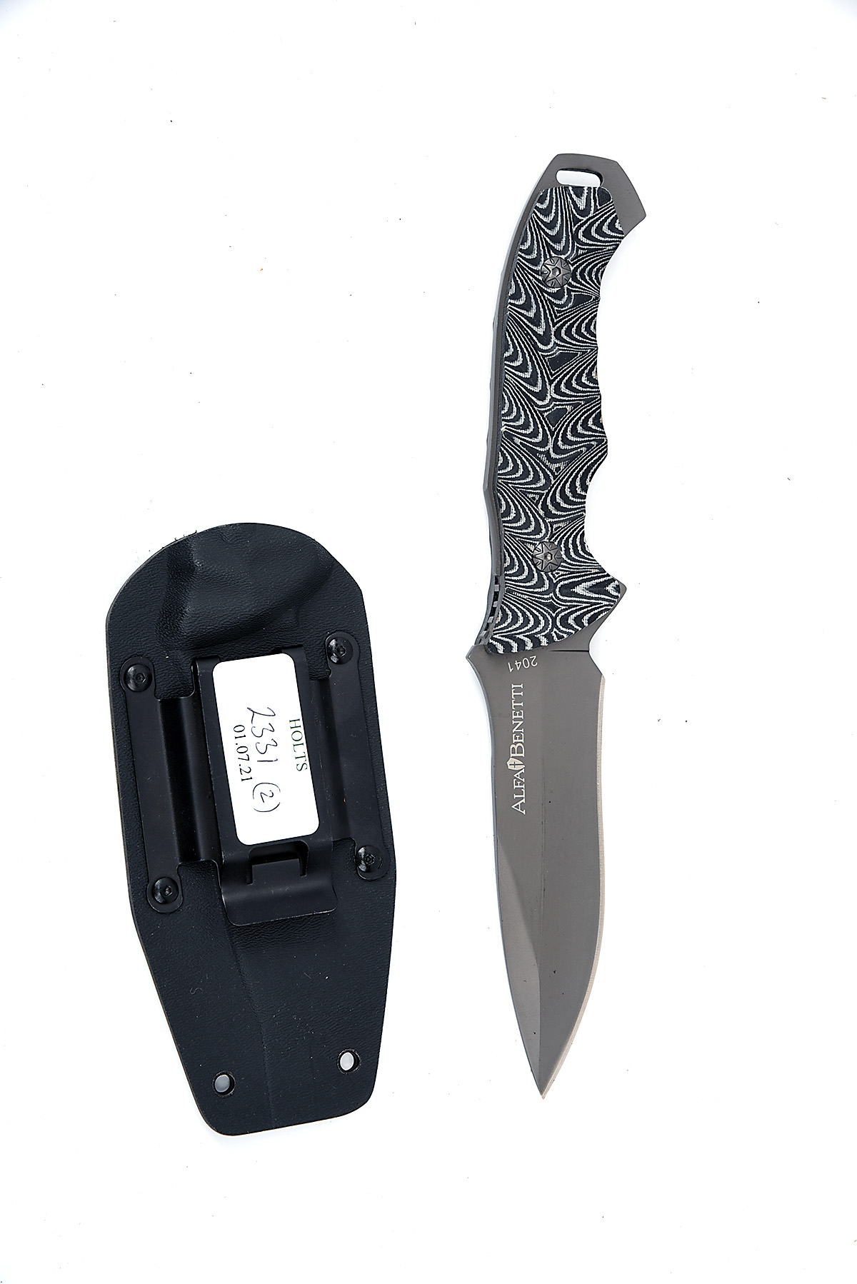 TWO MODERN TACTICAL SHEATH-KNIVES, the first a Gerber 'Sheridan Tanto', the second an Alfa Benetti 'No. 2041', both appearing unused in their Kydex sheaths (no boxes)