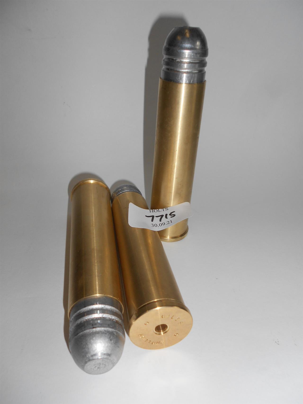 THREE INERT 2 BORE RIFLE CARTRIDGES BY GILES WHITTOME