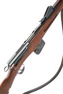 with 23 1/2" barrel block and blade front-sight, elevating tangent rear-sight, fluted rounded receiver with toggle-handled bolt, ring safe to rear and walnut full stocked with iron mounts and frontal stacking spike.