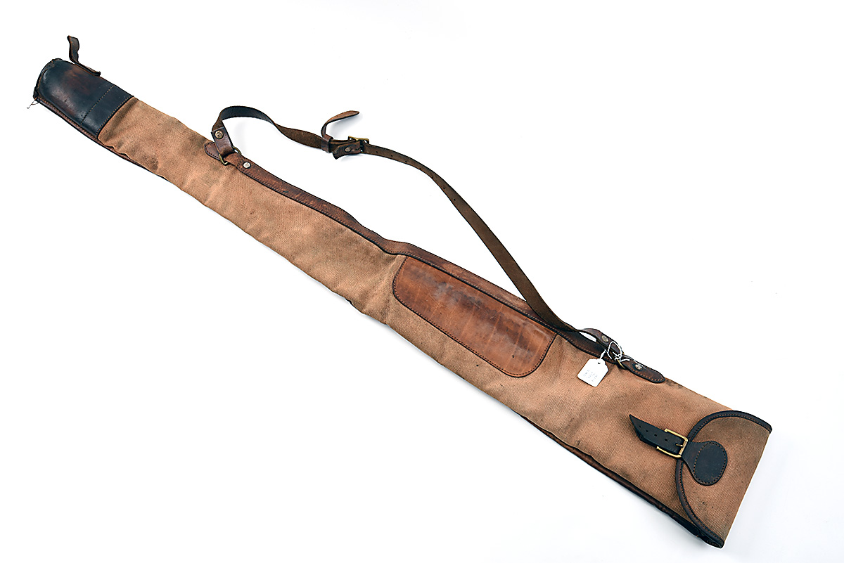 A CANVAS AND LEATHER FLEECE-LINED SINGLE GUNSLIP,