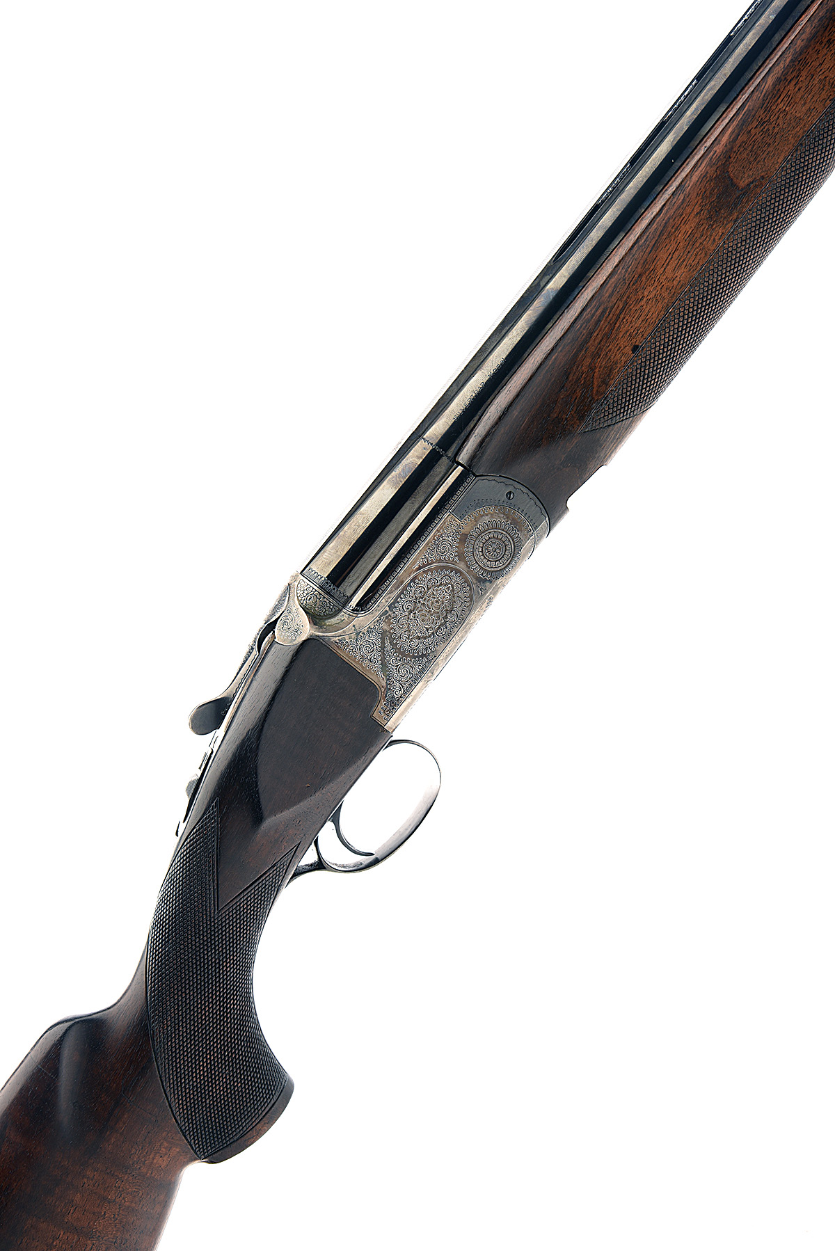 LUIGI FRANCHI 12-BORE 'SILVERTRAP' SINGLE-TRIGGER OVER AND UNDER EJECTOR, serial no. 82689, dated 1970, 28in. nitro barrels with 9mm ventilated matt top-rib, 2 3/4in. chambers, bored approx. 3/4 and full choke, hold-open toplever, manual safety with integral barrel selector switch, bouquet and scroll engraving, retaining some original colour-hardening and finish, 14 1/2in. pistolgrip stock including 1in. ventilated rubber recoil pad, weight 7lb. 14oz.