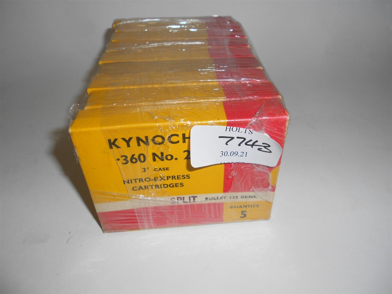 45 ROUNDS .360 No.2 NE 3in, SPLIT 320grn JEFFRIES BULLET, NE AMMUNITION BY KYNOCH Please be advised that cartridges/ammunition, primers, primed cases, blanks and percussion caps cannot be sent to you by post or carrier. If you wish, you can book a collection at one of our regional valuation days, or collect from our offices at PE31 6HA in Norfolk