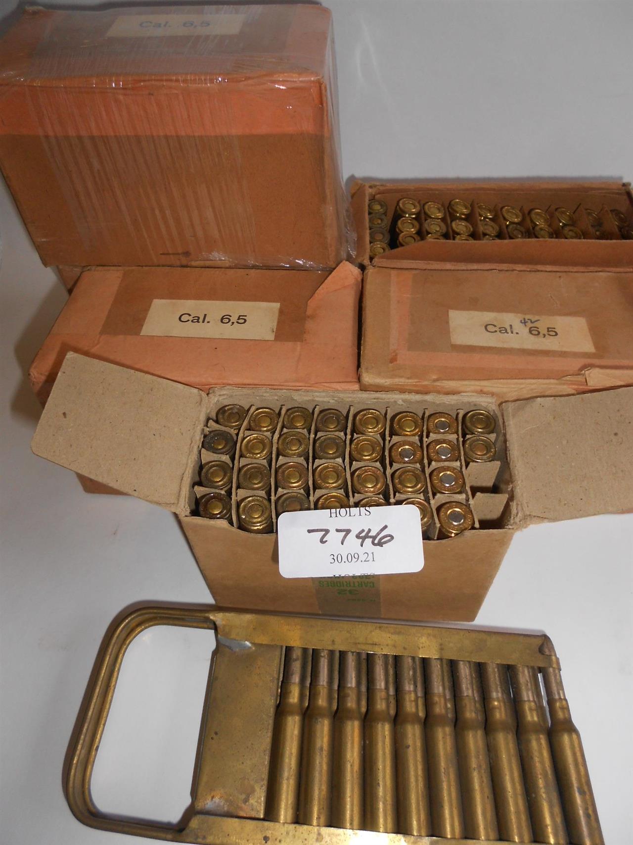 300 ROUNDS 6.5mm MANNLICHER AMMUNITION, 20 IN A MACHINE GUN CLIP, 4 ROUNDS ARE WINCHESTER, 276 ARE ITALIAN ISSUE, Please be advised that cartridges/ammunition, primers, primed cases, blanks and percussion caps cannot be sent to you by post or carrier. If you wish, you can book a collection at one of our regional valuation days, or collect from our offices at PE31 6HA in Norfolk