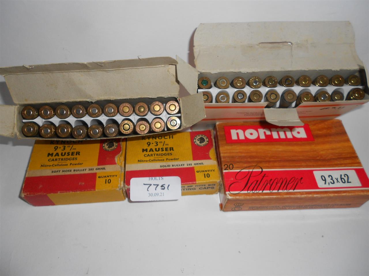 80 ROUNDS 9.3 x 62 MAUSER AMMUNITION, VARIOUS BRANDS AND BULLET TYPES TO SUIT COLLECTORS, comprising of: