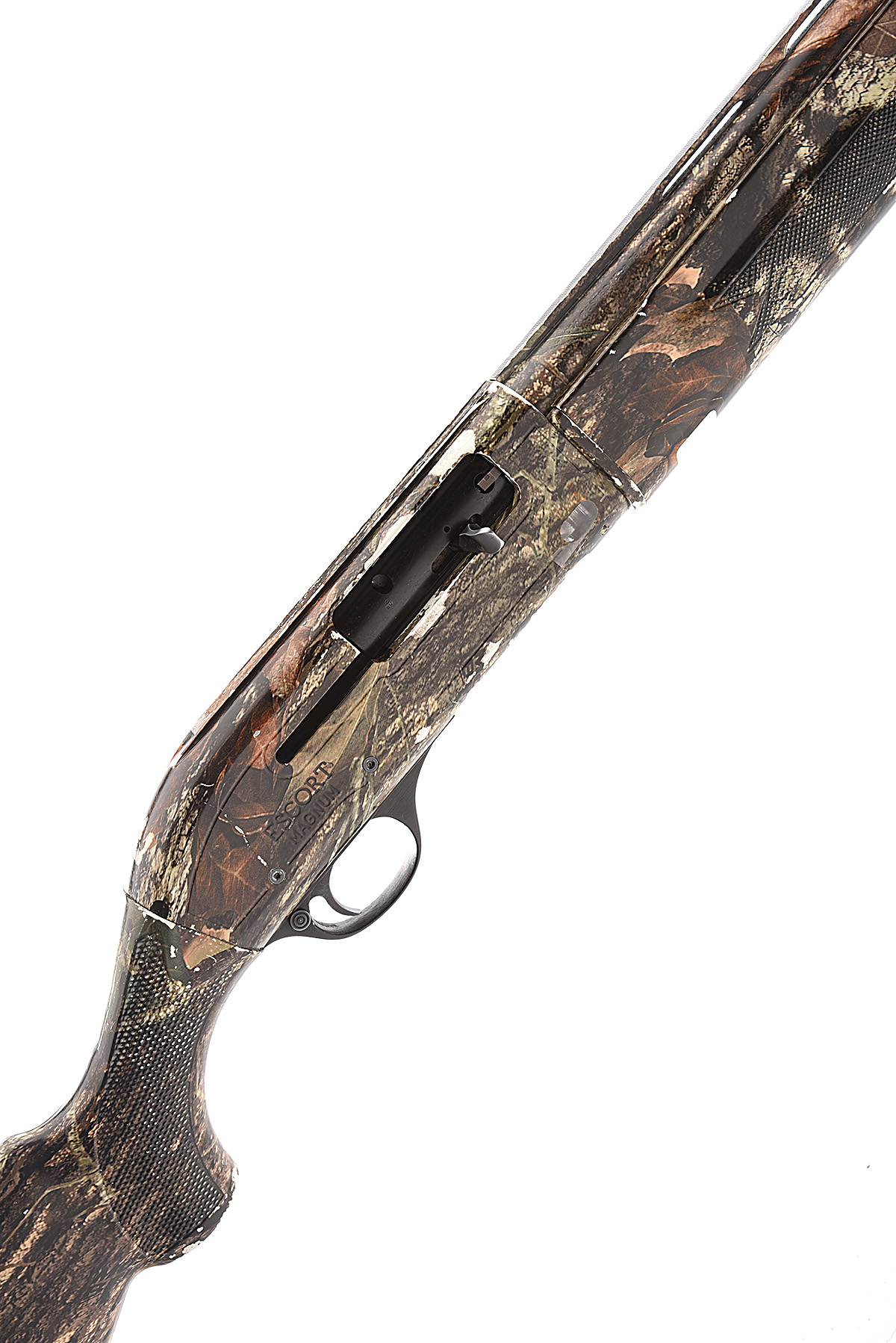 HATSAN 12-BORE (3IN.) 'ESCORT MAGNUM' SEMI-AUTO SHOTGUN, serial no. 092419, circa 2007, restricted magazine, 30in. steel-shot proofed nitro barrel with 7mm ventilated matt rib, 3in. chamber, multichoke (no spares), manual push-button safety, magazine cut-off switch, 14in. synthetic pistolgrip stock including rubber recoil pad, the whole in camouflage effect finish