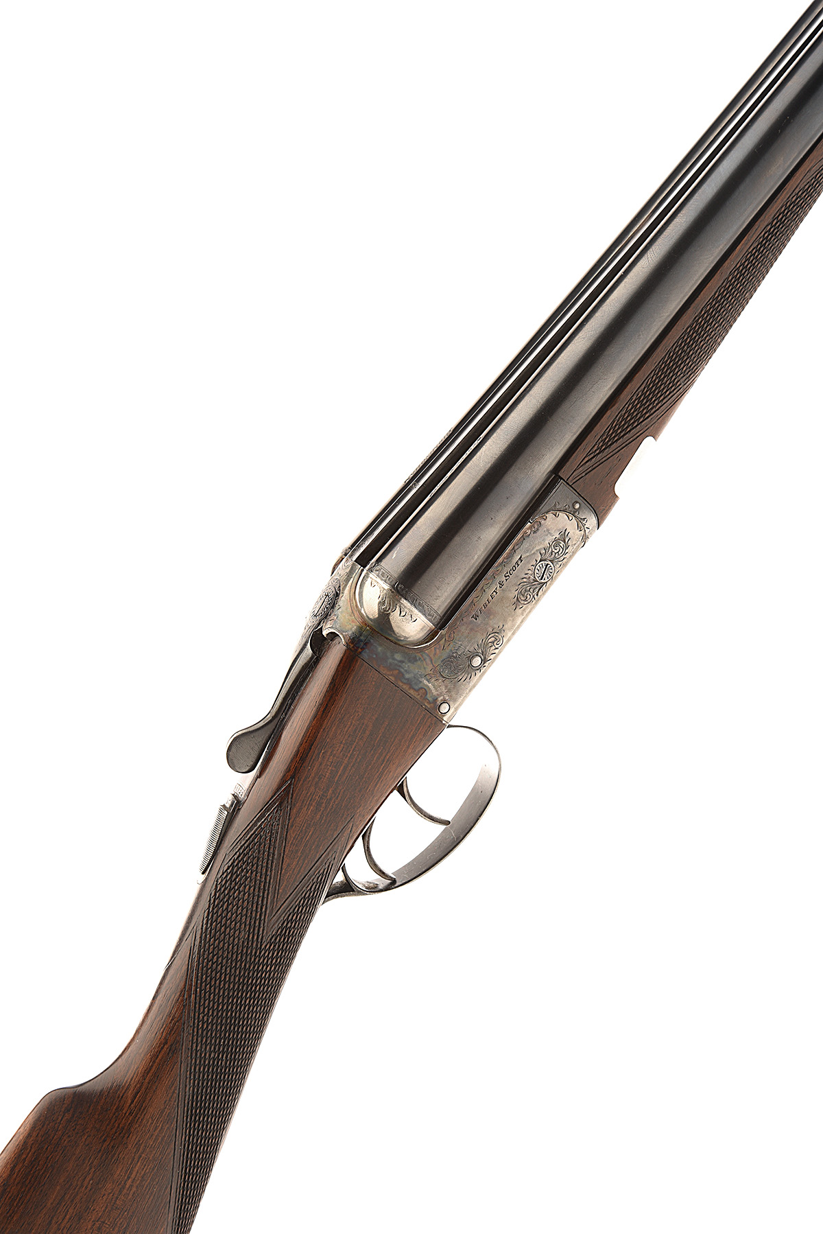 WEBLEY & SCOTT 12-BORE 'MODEL 700' BOXLOCK EJECTOR, serial no. 141069, for 1970, 26in. nitro barrels, the tubes engraved 'WEBLEY & SCOTT. BIRMINGHAM', 2 3/4in. chambers, bored approx. 1/4 and full choke, automatic safety, partially border and scroll engraved, retaining some original colour-hardening and finish, 14 3/4in. stock, weight 6lb. 6oz.