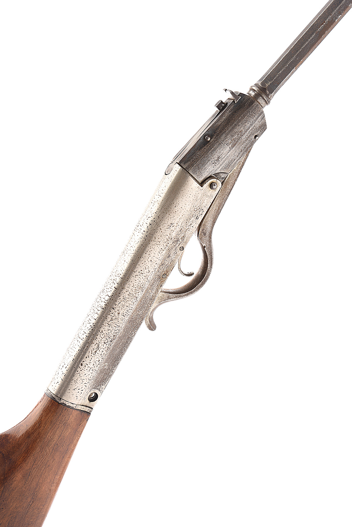 A .177 BREAK-BARREL AIR-RIFLE, UNSIGNED, MODEL 'GEM TYPE', serial no. 98924, possibly a date code for 1924, with two-stage sighted 16 1/2in. barrel, plated air-chamber, walnut butt-stock and cocking link forming the trigger guard, strong amount of finish remaining