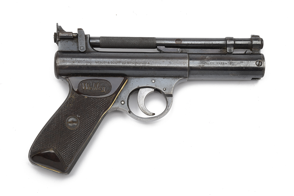 A .177 BARREL-COCKING AIR PISTOL SIGNED WEBLEY, MODEL SENIOR serial no. 279,