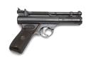 A .177 BARREL-COCKING AIR PISTOL SIGNED WEBLEY, MODEL 'SENIOR' serial no. 279, with a 6 3/4in. barrel, open sights, most of original bluing, bake lite pistol grips.