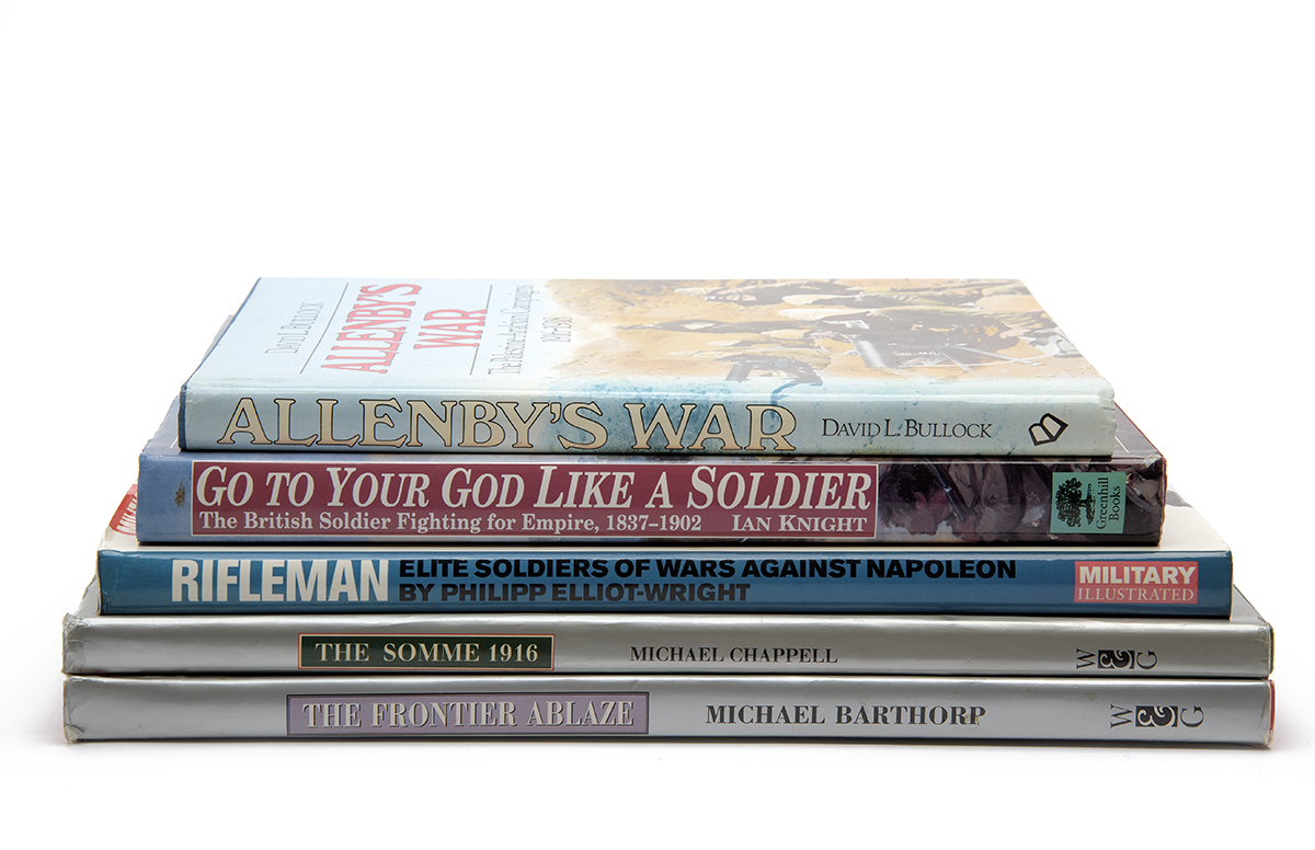 5X BOOKS MILITARY HISTORY; ALLENBY'S WAR, THE SOMME ETC comprising of, Allenby's War, Go to your God like a Soldier, Rifleman, The Somme 1916 and Frontier ablaze.