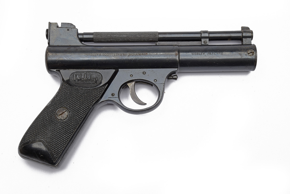 A BOXED .22 BARREL-LEVER AIR-PISTOL SIGNED WEBLEY, MODEL MK1 batch no. 397,
