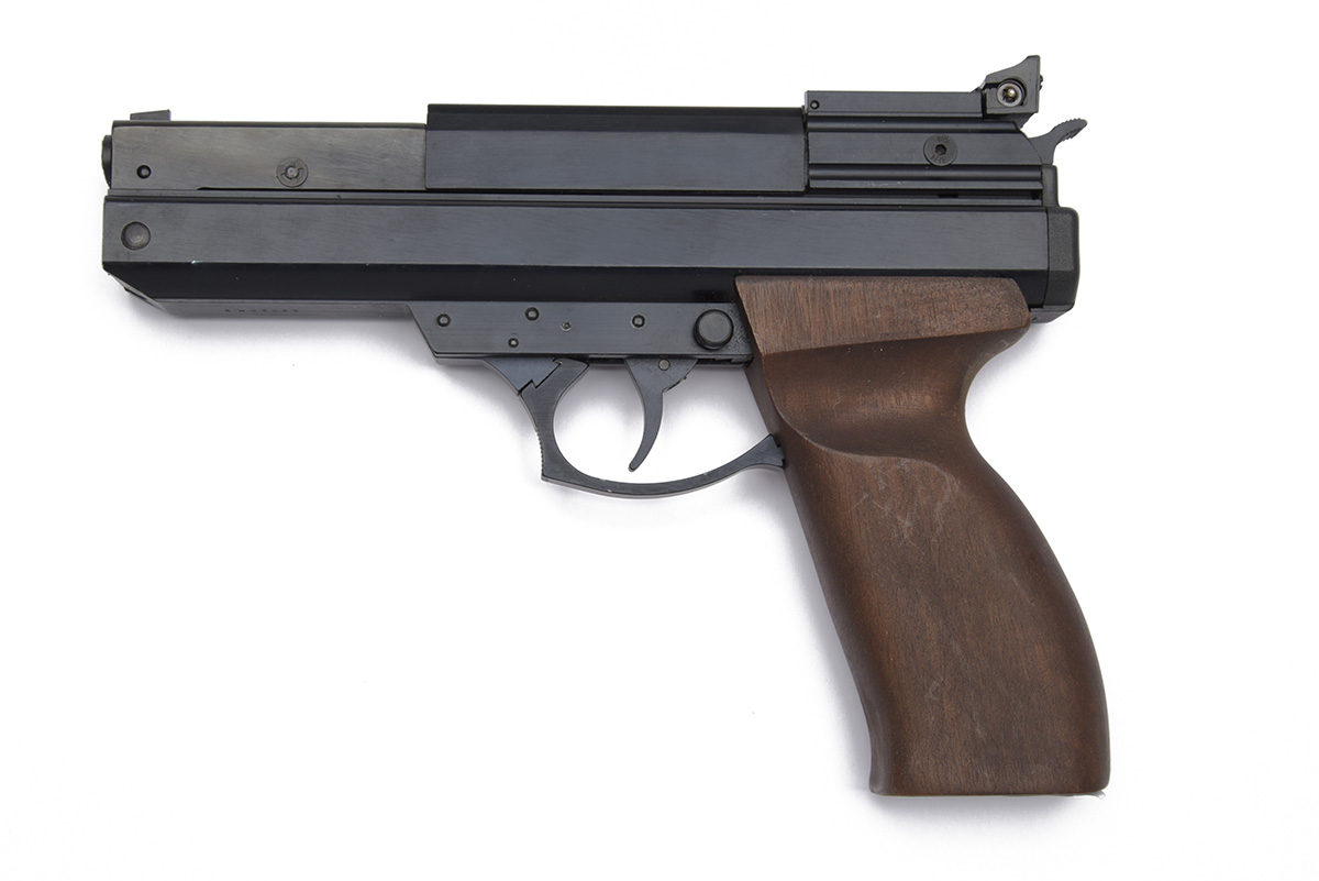 A SCARCE .22 SLIDE-COCKING AIR PISTOL SIGNED BSA, MODEL 240 magnum serial no. AN03492,