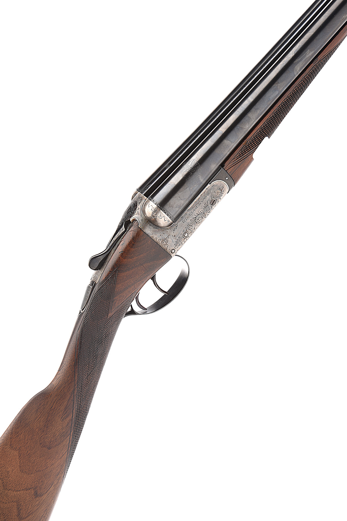 WILLIAM EVANS LTD. 12-BORE (CENTRAL VISION) BOXLOCK EJECTOR, serial no. 18554, for 1972, 26in. nitro barrels, the rib engraved 'WILLIAM EVANS LTD. 67A ST. JAMES'S STREET. LONDON. S.W.1.', 2 3/4in. chambers, bored approx. imp. cyl. and 1/4 choke, automatic safety, border and scroll engraving, retaining some original colour-hardening and finish, 15 1/4in. stock, cast towards central vision and including 1 3/8in. wooden extension, weight 6lb. 4oz.