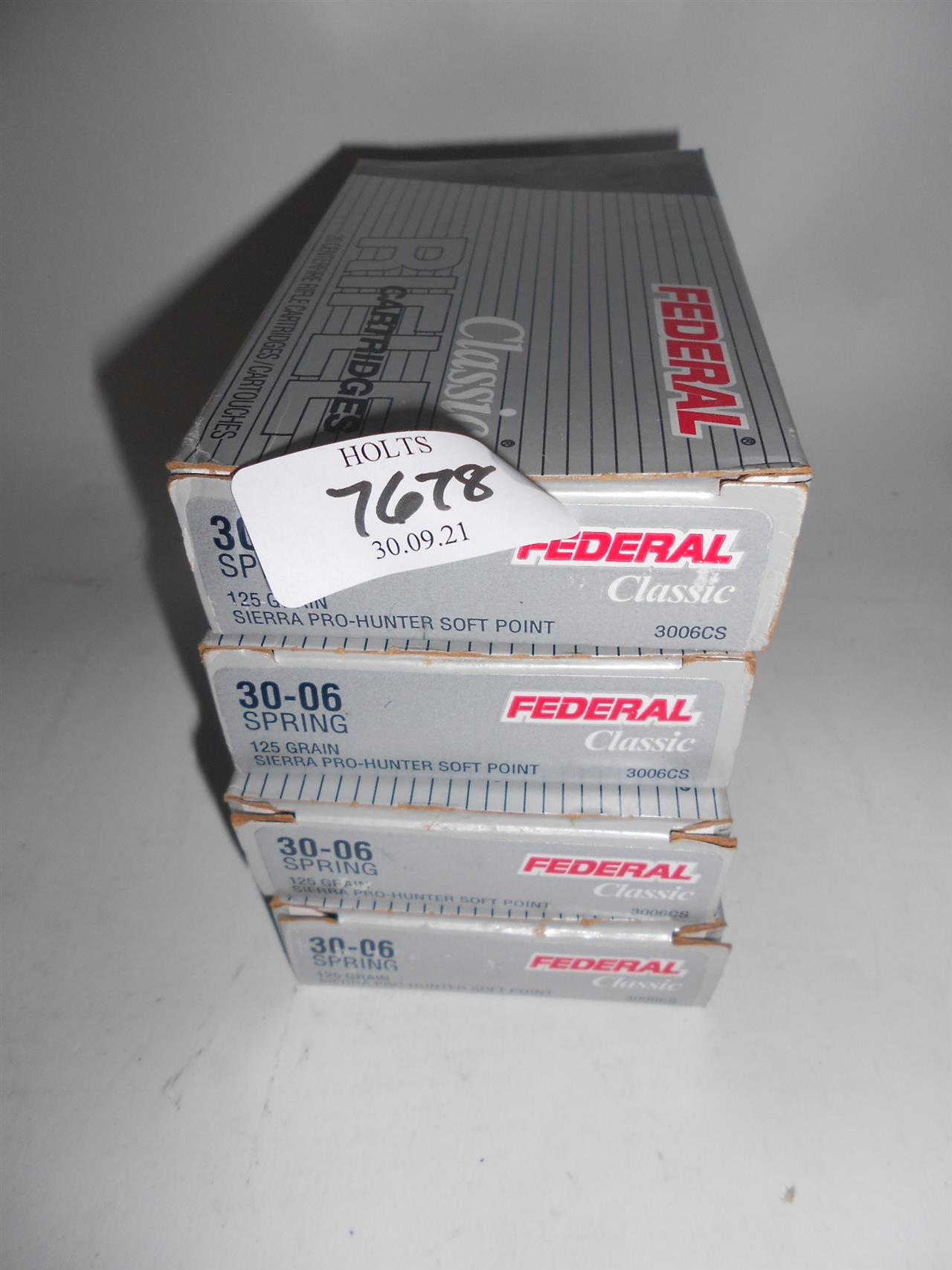 78 ROUNDS .30-06 SPRING- 125 grn SIERRA PRO HUNTER SP AMMUNITION BY FEDERAL Please be advised that cartridges/ammunition, primers, primed cases, blanks and percussion caps cannot be sent to you by post or carrier. If you wish, you can book a collection at one of our regional valuation days, or collect from our offices at PE31 6HA in Norfolk