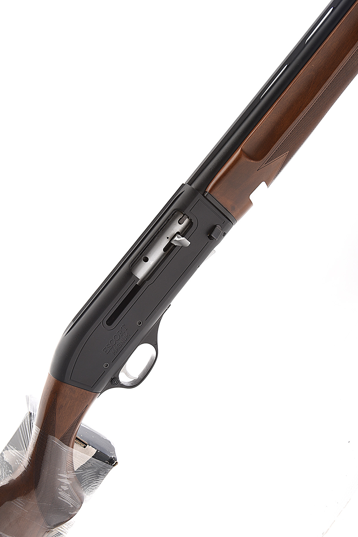 A LITTLE USED HATSAN 20-BORE (3IN.) 'ESCORT MAGNUM' SEMI-AUTO SHOTGUN, serial no. 104231, circa 2007, restricted magazine, 24in. steel-shot proofed nitro barrel with 6mm ventilated matt rib, 3in. chamber, multichoke (with spares), manual push-button safety, magazine cut-off switch, blacked action, 12 1/2in. pistolgrip stock including rubber recoil pad, weight 6lb.