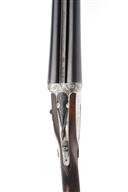 AYA 12-BORE 'NO.2' HAND-DETACHABLE SIDELOCK EJECTOR, serial no. 442370, for 1975, 26in. nitro barrels, 2 3/4in. chambers, bored approx. 1/4 and 1/2 choke, engraved arcaded fences, removable striker discs, automatic safety, hand-detachable lockplates, gold-inlaid cocking-indicators, articulated front trigger, rolled-edge triggerguard, acanthus scroll engraving, bright and blued finish, 14 1/2in. stock (slightly cast on), weight 6lb. 10oz., in its AYA cardboard carton