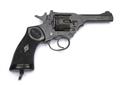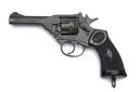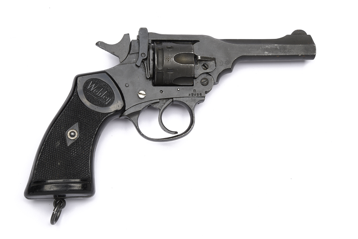 A .38 (S&W) REVOLVER SIGNED WEBLEY, MODEL 'MKIV' serial no. 49434, with a 4in. barrel, open sights, black vulcanized rubber grips in a leather full flap holster.