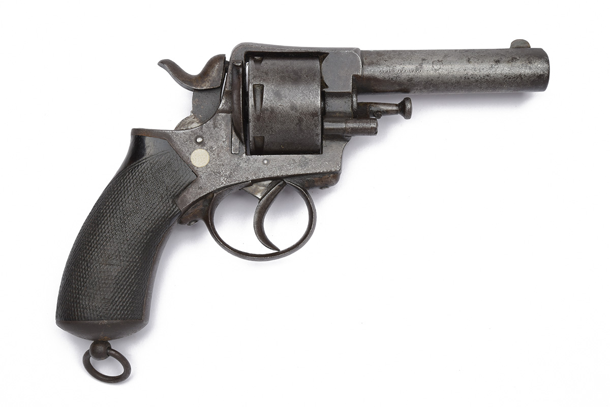 A .450 SIX-SHOT REVOLVER, UNSIGNED, serial no. B47965, circa 1878, with ovoid 4in. barrel, solid frame marked 'JOINT PATENTS' over '**TON & CO', plain cylinder and chequered walnut grip, no finish remaining