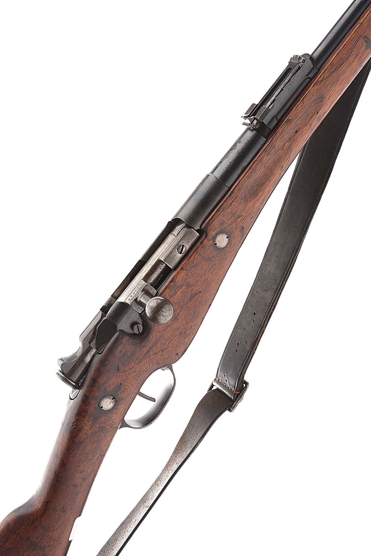 ETs CONTINSOUZA .410 (3IN.) (SMOOTHBORED) 'BERTHIER MLE 1907-15' BOLT-MAGAZINE SERVICE RIFLE, serial no. 75658, with bayonet dated 1931, 32 1/2in. nitro smoothbored barrel, with block-mounted blade fore-sight, adjustable notch rear-sight, 3in. chamber, bored approx. true cyl. choke, 13 1/4in. pull including steel buttplate, leather sling