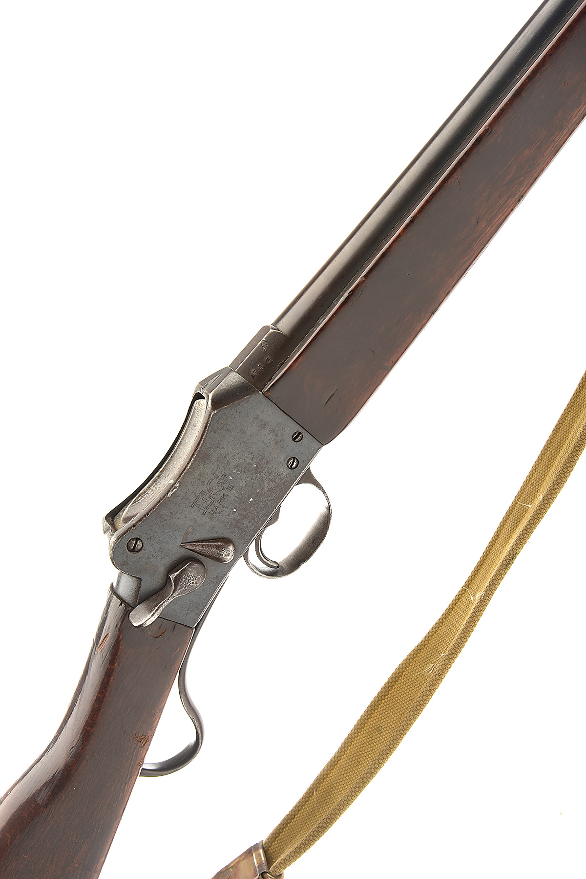W.W. GREENER 14 1/2-BORE 'E.G. MARK III' MARTINI-ACTION SHOTGUN, serial no. 40932, circa 1930, 26in. nitro barrel for the 14-bore Greener special bottle-necked cartridge, bored approx. 1/4 choke, plain blacked action, stamped ''W.W. GREENER. MAKER. PATENT No. 463628/35' and 'EG. MARK III.', 14 1/4in. stock including brass buttplate with central hinged trapdoor, full-length fore-end, canvas sling