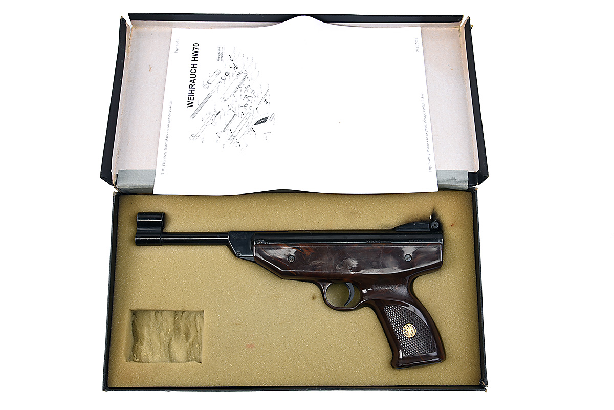 A BOXED .177 BREAK-BARREL AIR PISTOL SIGNED WEIRAUCH, MODEL HW70 serial no. 020196,