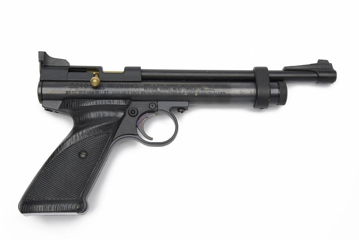 A .22 CO2 POWERED AIR PISTOL SIGNED CROSMAN, MODEL 2240 serial no. 614805353,