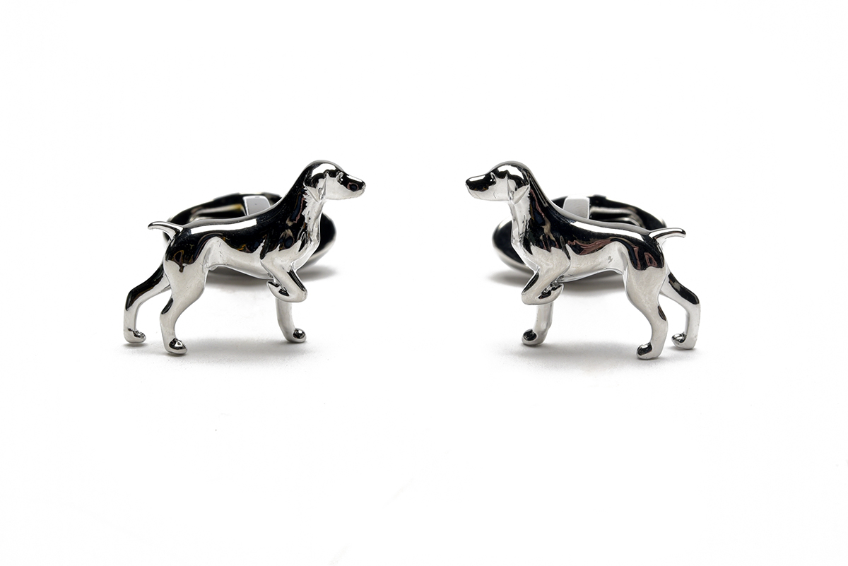 A PAIR OF UNUSED POINTER CUFFLINKS, set in a baize-lined leather case