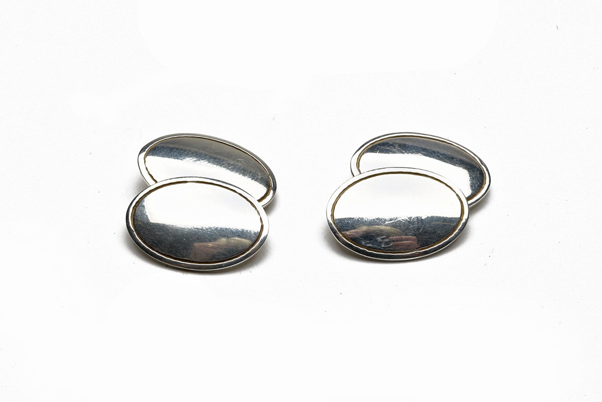 A PAIR OF STERLING SILVER OVAL CUFFLINKS