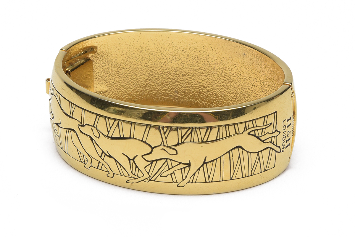 A HOLLAND & HOLLAND GOLD COLOUR HUNTING DOG BANGLE,
