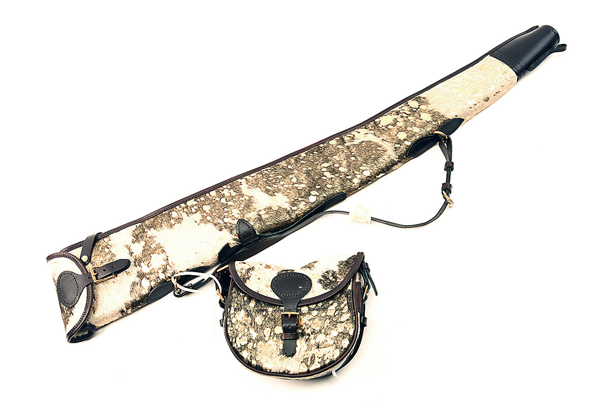 † A NEW AND UNUSED JO YORATH GOLDEN HIDE SPECKLE FLEECE-LINED SINGLE GUNSLIP WITH MATCH CARTRIDGE BAG, with shoulder straps and brass fittings