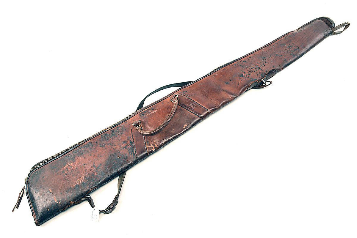 A VINTAGE LEATHER FLEECE-LINED SINGLE GUNSLIP,